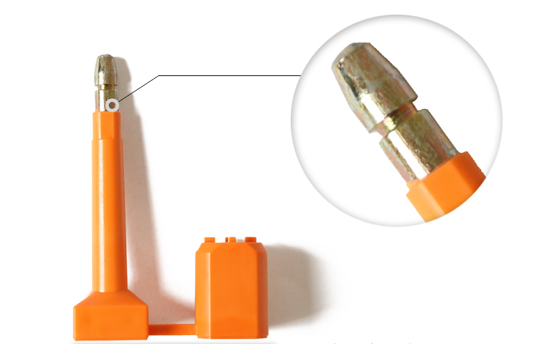帶有“防轉(zhuǎn)”功能,鎖后不能被高速旋轉(zhuǎn)拉出;產(chǎn)品套子里有卡簧式的鎖條,產(chǎn)品鎖上后,卡簧與桿子的金屬頭作用,嵌入金屬頭部的凹槽,達(dá)到封鎖作用。
